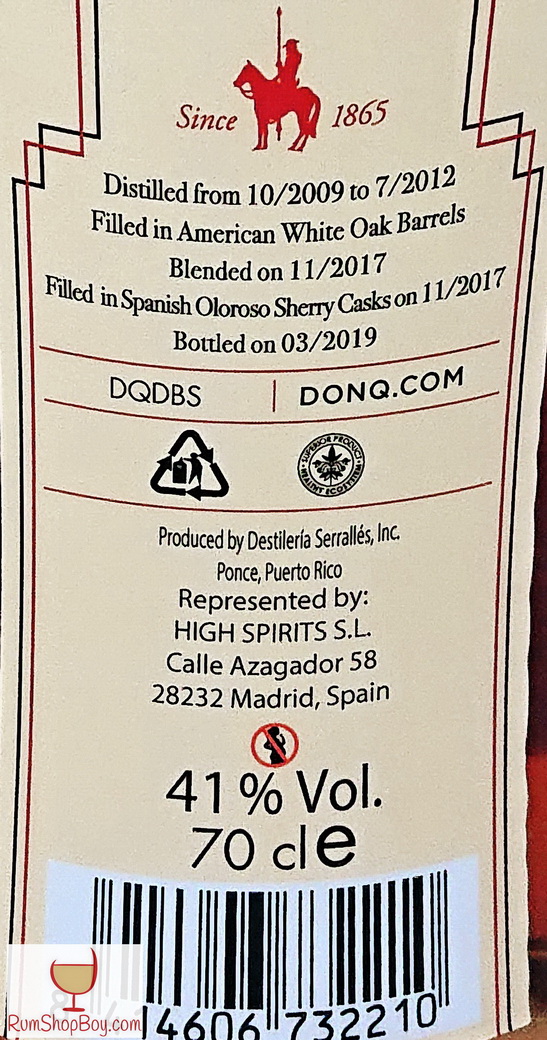 Don Q: Puerto Rican Rum Finished in Sherry Casks (Oloroso) REAR Label