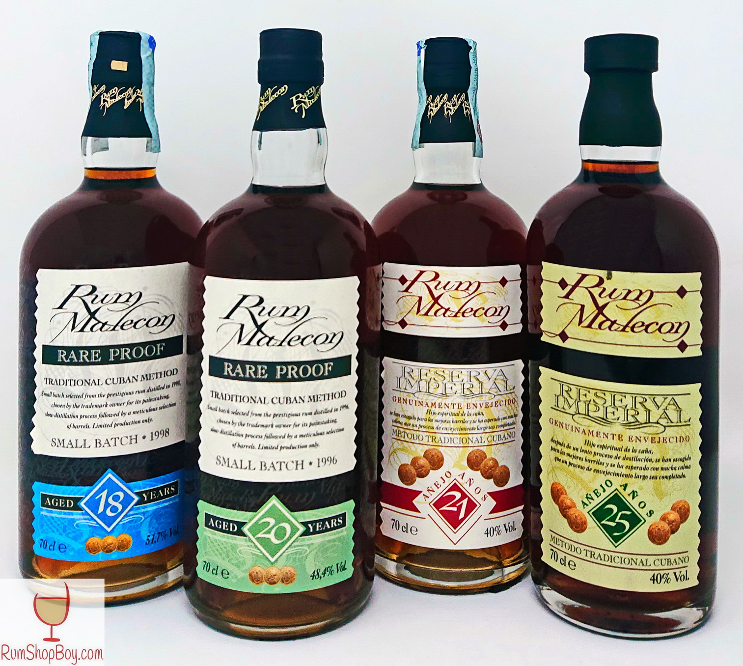Having tried the 18 and 20 year old “Rare Proof” editions at 51.7% and 48.4% respectively alongside the 21 and 25 year old “Reserva Imperial” editions at 40%, I can say quite comfortably that unless you have a sweet tooth, I would absolutely avoid the 40% versions. Whilst the higher ABV Malecons are not overly rummy and are a touch sweet, the higher ABV compensates somewhat.